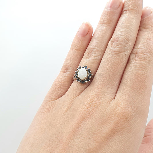 Vintage Sterling Silver Opal Sapphire Ring Cluster Halo Genuine Gemstones Womens Girls Jewelry Mens Jewellery UK K.5 US 5.5