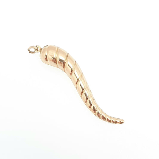 Vintage 9ct 9k Gold Horn of Life Pendant Necklace Charm Horn of Plenty Unicorn Large Big Solid 9kt Retro Jewellery Jewelry