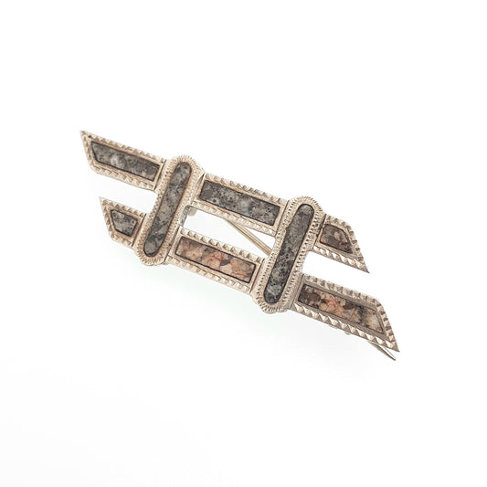 Antique Sterling Silver Scottish Granite Brooch Equals Parallel Traversal Pink Aberdeenshire Feldspar Scotland Vintage Womens Jewelry