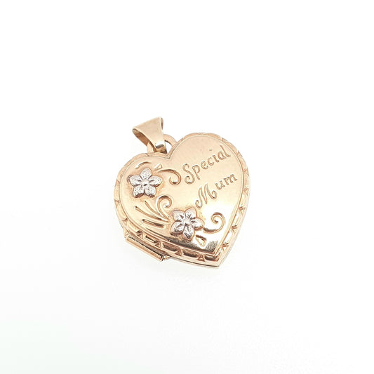 Vintage 9ct 9k Gold SPECIAL MUM Locket Heart Necklace Pendant "Love You Always" Embossed Mothers Day Gift Solid 9kt Jewelry Jewellery