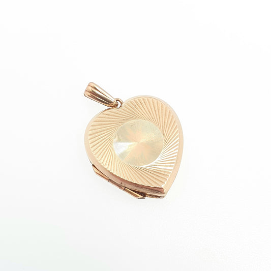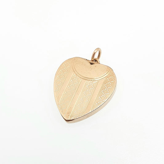 Antique 9ct Gold Heart Locket Engine Turned Art Deco Solid 9k 375 Pendant Fine Estate Back & Front Cute Necklace Jewelry Womens Jewellery