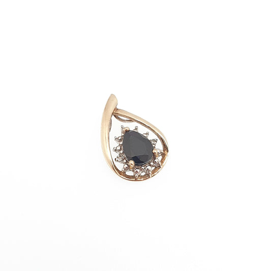 Vintage 9k 9ct Gold Sapphire & Diamond Necklace Pear Cut Pendant Cluster Small Solid 375 Yellow Cute Ladies Womens Jewelry Retro Jewellery
