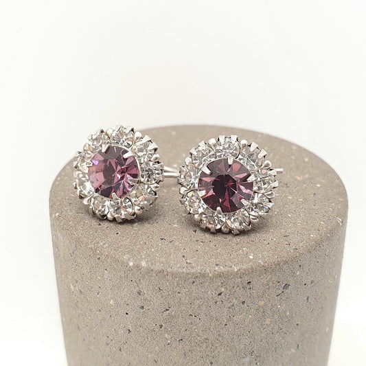 Antique Solid Silver Amethyst Paste Earrings Hook Diamond Pastes Cluster Sparkly Foiled Glass Vintage Womens Jewelry Jewellery