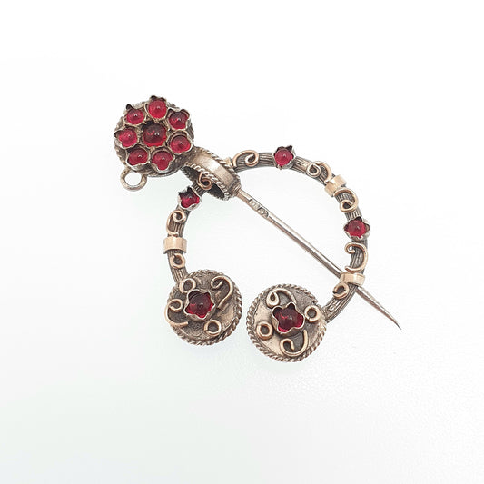 Antique Vintage Solid Silver Cloak Pin Brooch Garnet Paste Celtic Scandinavian Style Decorative Scarf Pin Gold Highlights