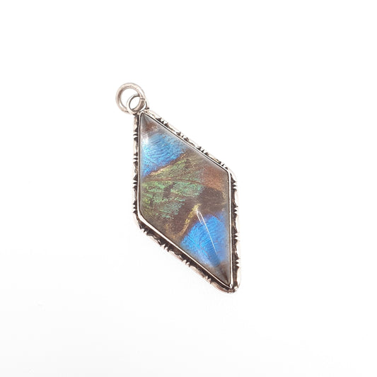 Antique Art Deco Sterling Silver Butterfly Wing Necklace Pendant Kite Shape Vintage 1920s Blue Bug Fly Insect Rare Jewelry Jewellery