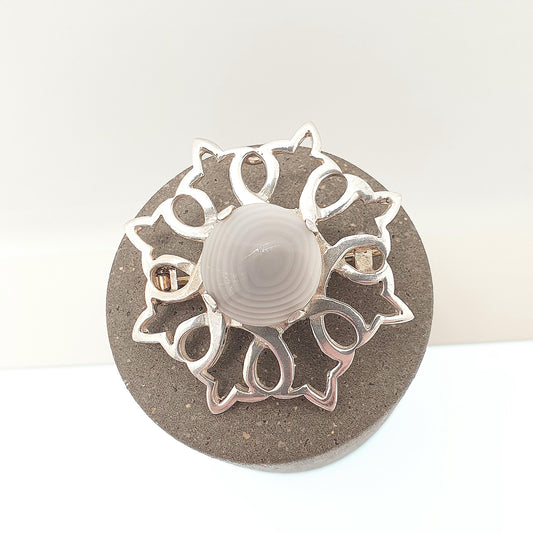 Vintage Sterling Silver JOHNFRASER Agate Brooch Scottish Inverness Gaelic Celtic Knot Natural Quartz Gemstone 925 Womens Jewelry Jewellery