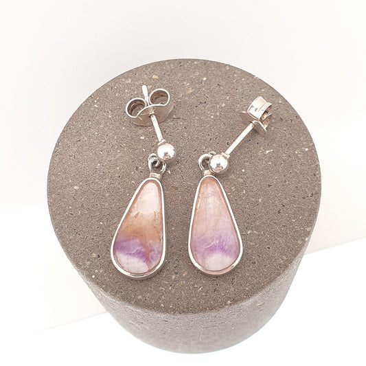Vintage Blue John Sterling Silver Earrings Stud Hanging Pear Teardrop Drop Cabochon Bleu Jaune Womens 925 Gemstone Jewelry Jewellery