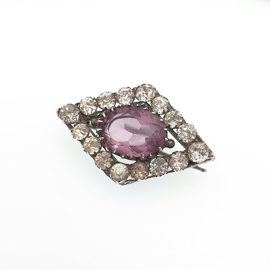 Antique Solid Silver Amethyst Paste Brooch Victorian Diamond Pastes Kite Shape Heart Border 1800s Vintage Jewelry Jewellery