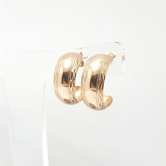 Vintage 9k 9ct Gold Hoop Earrings Stud Three Quarter Etched Solid 375 9kt Retro Womens Jewelry Jewellery