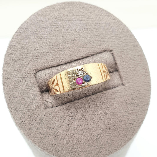 Antique 18ct Sapphire Diamond Ruby Ring Victorian Solid Gold 18k 750 18kt Gemstone Womens Vintage Jewelry Jewellery