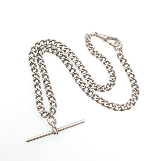 Antique Victorian Sterling Silver Albert Chain T Bar Necklace Curb Link Dog Clip 40cm 15.7" 31.80g Hallmark Vintage Jewelry Womens