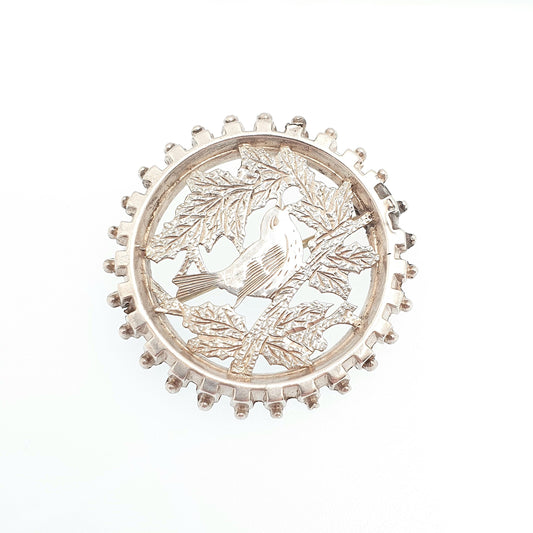 Antique Victorian Solid Silver Bird Brooch Etruscan Wheel Pin Sweetheart Good Luck Vintage Jewelry Jewellery