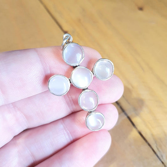 Antique Solid Silver Moonstone Cross Necklace Crucifix Pendant Victorian Gemstone Cruciform Jewelry Vintage Jewelry
