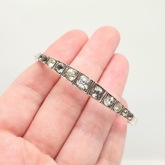 Antique Victorian Solid Silver Diamond Paste Bangle Bracelet 9ct Rose Gold Georgina Style Old Cut Pastes