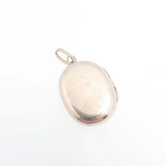Antique Victorian Solid Silver Locket Smooth Polished Plain Blank Small Oval Necklace Pendant Picture Photo 1800s Vintage Jewellery Jewelry