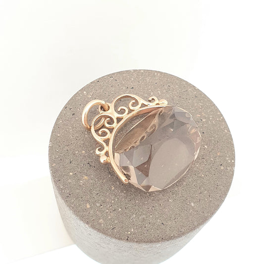 Vintage 9ct 9k Gold Smoky Quartz Spinner Fob Pendant Necklace Gemstone Albert Style Genuine Solid 375 Hallmark Vintage Jewellery Jewelry