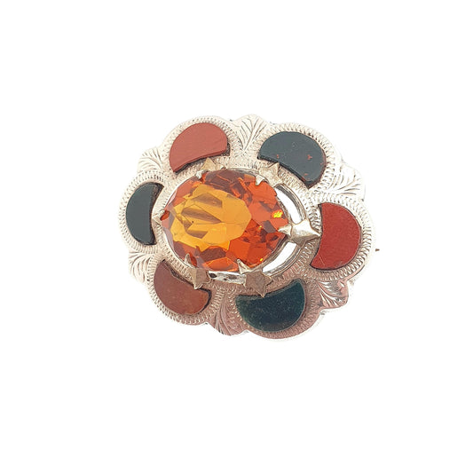 Antique Sterling Silver Scottish Brooch Bloodstone Red Jasper Citrine Paste Cairngorm Solid 925 Vintage Celtic Womens Jewelry Jewellery