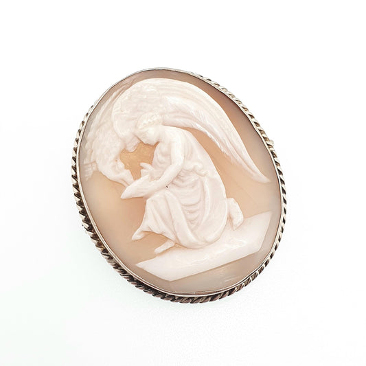 Antique Solid Silver Cameo Brooch: Hand Carved Shell Eagle, 1920s Art Deco, Large Vintage Jewelry