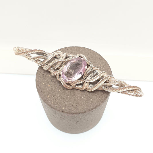 Antique Solid Silver Amethyst Brooch Genuine Real Gemstone Arts and Crafts Handmade Jewelry Jewellery