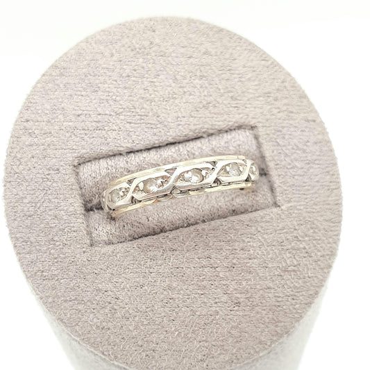 Antique 9ct 9k Gold Sterling Silver Eternity Ring Diamond White Spinel Band Solid 9kt Gold Art Deco Vintage 1920s Womens Jewelry Jewellery