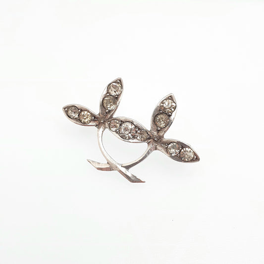 Antique Diamond Paste Sterling Silver Brooch Pin Double Leaf Victorian Sparkly Vintage Womens Jewelry Jewellery