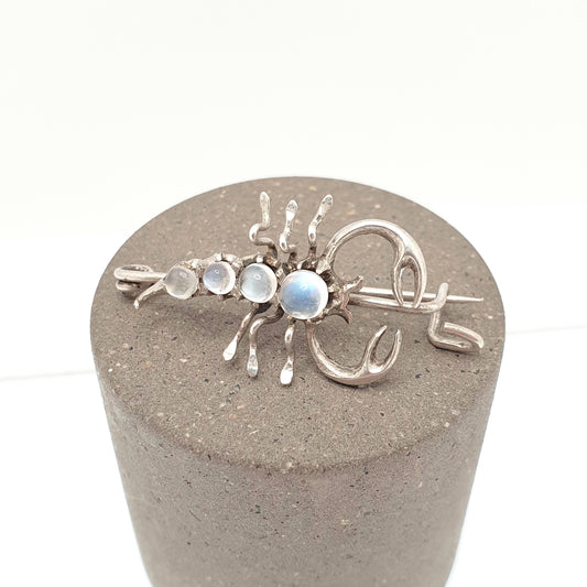 Antique Solid Silver Moonstone Scorpion Brooch Scorpio Victorian Natural Genuine Gemstones Vintage Arachnid Insect Gift Jewelry Jewellery