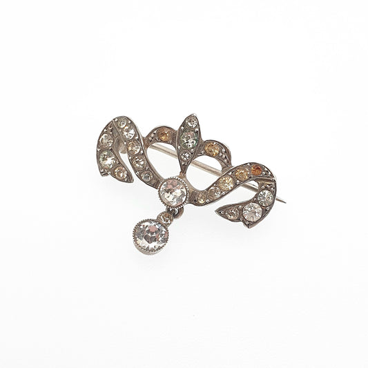 Antique Victorian Sterling Silver Diamond Paste Brooch Scroll Hanging Drop Pendant Ornate Late 1800s Sparkly Foiled Jewelry Jewellery