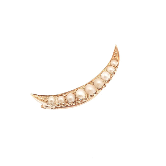 Antique 14k Gold Crescent Moon Brooch Seed Pearl Victorian Solid 14kt Pin Celestial Lucky Good Luck Large Big Womens Jewelry Jewellery