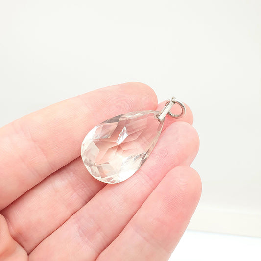 Antique Quartz Solid Silver Pendant Rock Crystal Necklace Clear Art Deco Pear Cut Natural Faceted Gemstone 1920s Womens Jewelry Jewellery