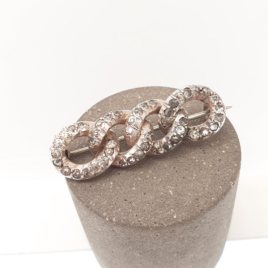 Antique Victorian Solid Silver Diamond Paste Curb Link Brooch Pin Rare Unique Chain Links 1800s Vintage Womens Jewelry Jewellery