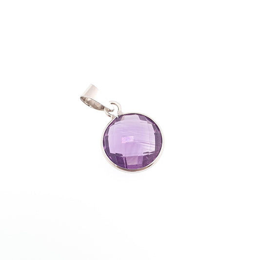 Vintage 18ct 18k White Gold Amethyst Necklace Pendant Round Rose Cut Solid 750 18kt Small Cute Genuine Womens Ladies Jewelry Jewellery