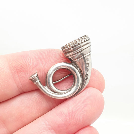 Antique Blue John Sterling Silver Brooch Hunting Horn Pin 1905 Hallmark Genuine Real Bleu Jaune Vintage Womens Jewelry Jewellery