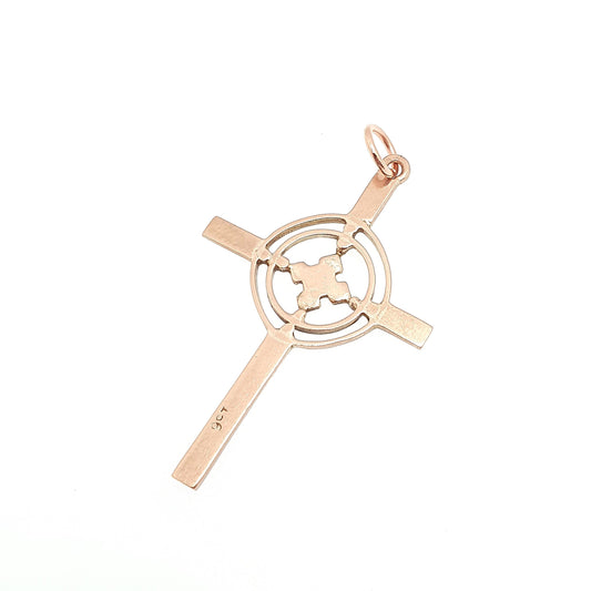 Antique 9ct 9k Rose Gold Celtic Cross Necklace Crucifix Pendant Gaelic Irish Solid 9k 375 Vintage Womens Mens Jewellery Jewelry