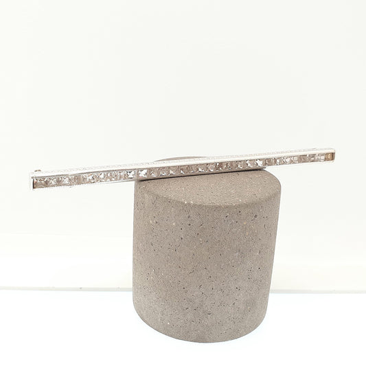 Antique Art Deco Solid Silver Diamond Paste Bar Brooch Channel Set Square Cut French Hallmark Geometric 1920s Vintage Jewellery Jewelry