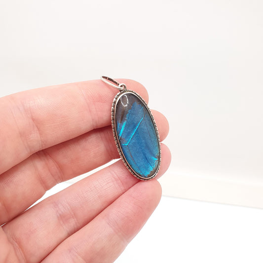Antique Sterling Silver Butterfly Wing Necklace Pendant Large Oval Art Deco Round Vintage 1920s Blue Bug Fly Insect Jewelry Jewellery Womens