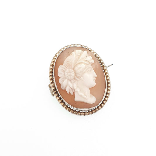 Antique Solid Silver Victorian Cameo Brooch Gold Vermeil Rope Border Oval Hand Carved Shell Italian European Vintage Jewelry Jewellery