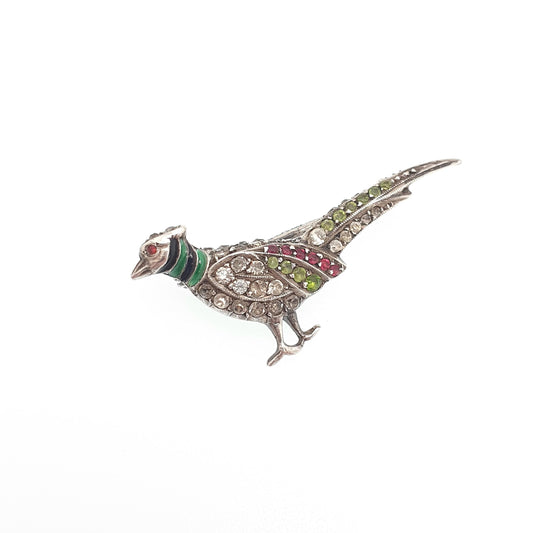 Antique Sterling Silver Pheasant Brooch Paste Enamel Head Art Deco Bird Peacock Partridge Style Hunting Vintage Womens Jewelry