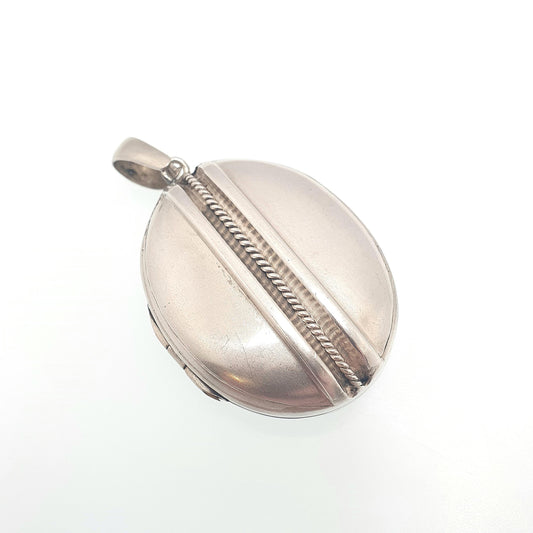 Antique Victorian Solid Silver Locket Large Oval Necklace Pendant Rope Finish Picture Photo 1800s Vintage Jewellery Jewelry