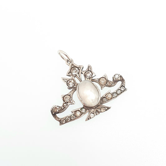 Antique Solid Silver Victorian Diamond Paste Necklace Pendant Mother of Pearl Centre Shell Art Nouveau Vintage Ornate Jewellery Jewelry
