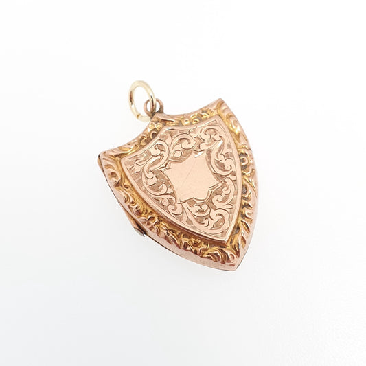 Antique Victorian 9ct Gold Shield Locket 9kt 9k Rose Back and Front Pendant Engraved Picture Photo Vintage Jewellery Jewelry