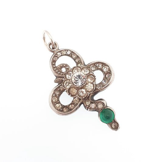 Antique Victorian Solid Silver Snake Necklace Pendant Diamond Tone Emerald Tone Paste Infinity Vintage Womens Jewelry Jewellery
