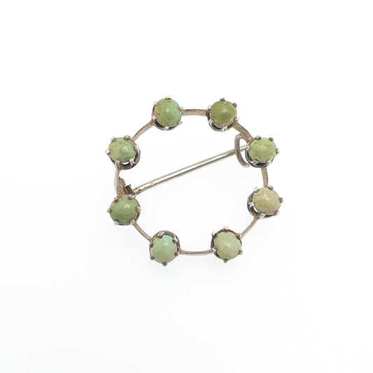 Antique Victorian Solid Silver Turquoise Brooch Circle O 0 Zero Infinity Natural Gemstone Womens Jewelry Jewellery Vintage