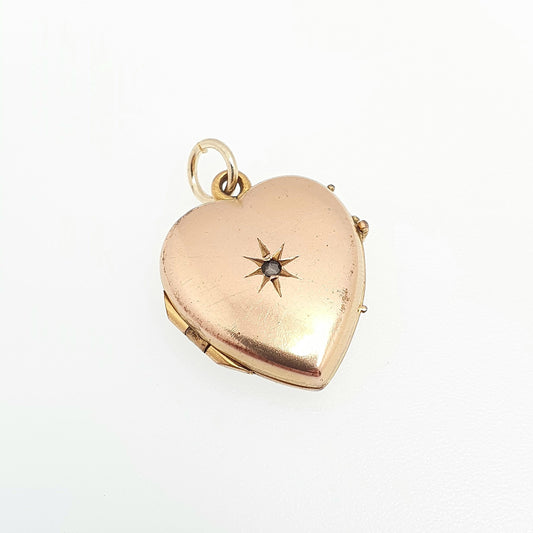 Vintage Rolled Gold Heart Locket Star Engraved Love Gift Necklace Pendant Womens Jewellery Jewelry Engraved Gold Filled Romantic