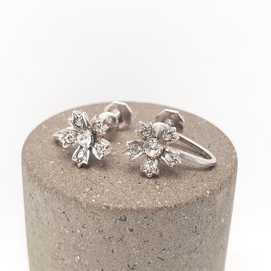 Antique Sterling Silver Diamond Paste Flower Earrings Art Deco SCP Ciro 1920s Vintage Sparkly Jewelry Jewellery
