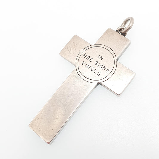Antique Victorian Solid Silver Crucifix Necklace In Hoc Signo Vinces "In this sign thou shalt conquer" Christian Pendant Constantine