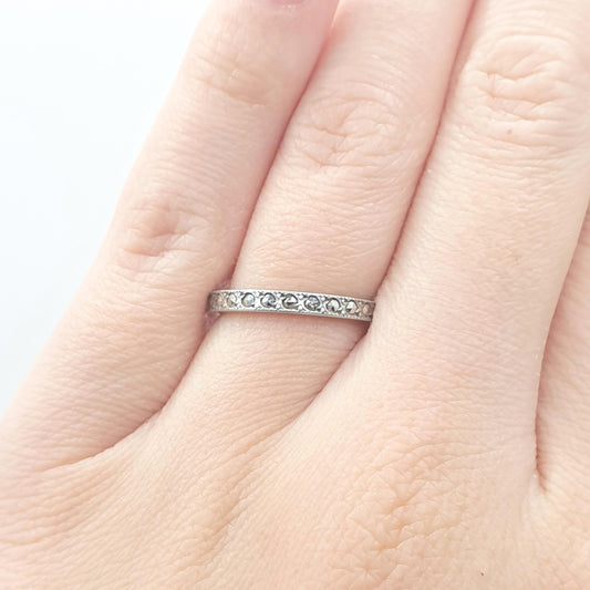 Antique Art Deco Sterling Silver Marcasite Full Eternity Ring Engraved Flats Band Stacker Vintage Jewelry Jewellery