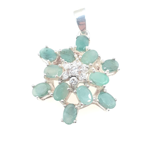 Vintage Real Emerald Sterling Silver Pendant Necklace Cluster Star Genuine Gemstone Solid 925 Womens Jewelry Jewellery