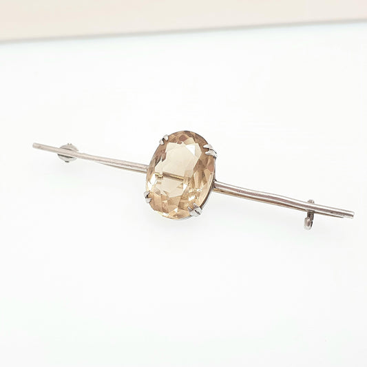 Antique Solid Silver Citrine Bar Brooch Oval Cut Natural Gemstone Orange Bar Pin Womens Unisex Jewelry Jewellery