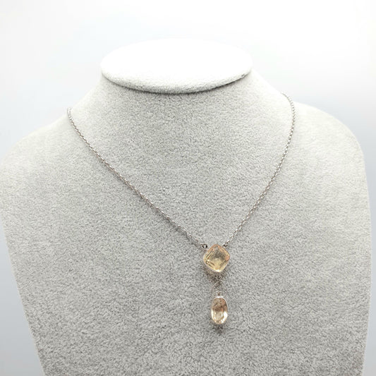 Antique Solid Silver Citrine Pendant Necklace Quartz Gemstone Lavaliere Victorina Art Nouveau Vintage Women Jewelry Jewellery