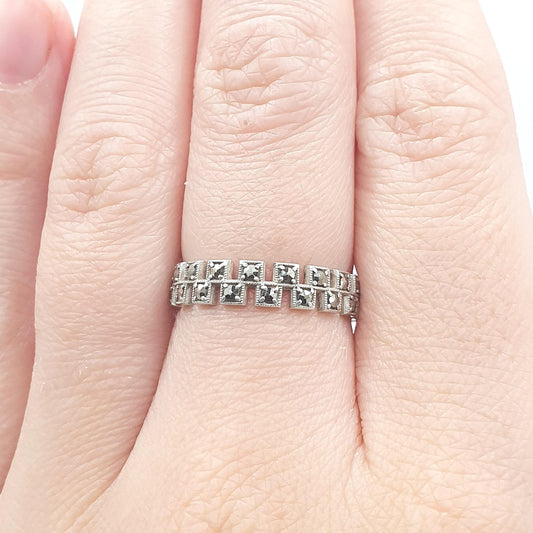 Antique Art Deco Solid Silver Marcasite Eternity Ring Stepped Flapper 1920s Unisex Womens Jewelry Jewellery